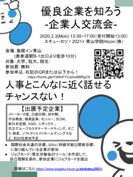 2/3に我々は「企業人交流会」という就活イベントを開催します。